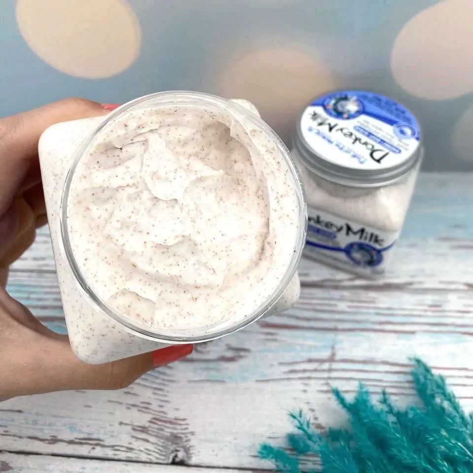 🩵 اسکراب بدن شنی شیر الاغ ووکالی | شروعی نو برای مراقبت طبیعی از پوست 💦